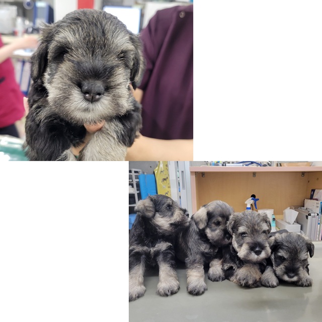 1ヶ月前に帝王切開で取り上げたM.シュナウザーの仔犬が来院してくれました。